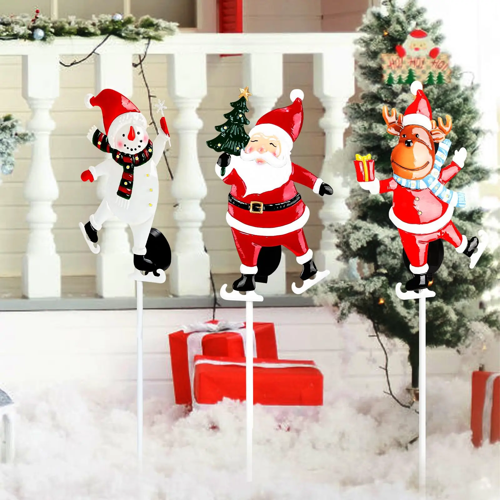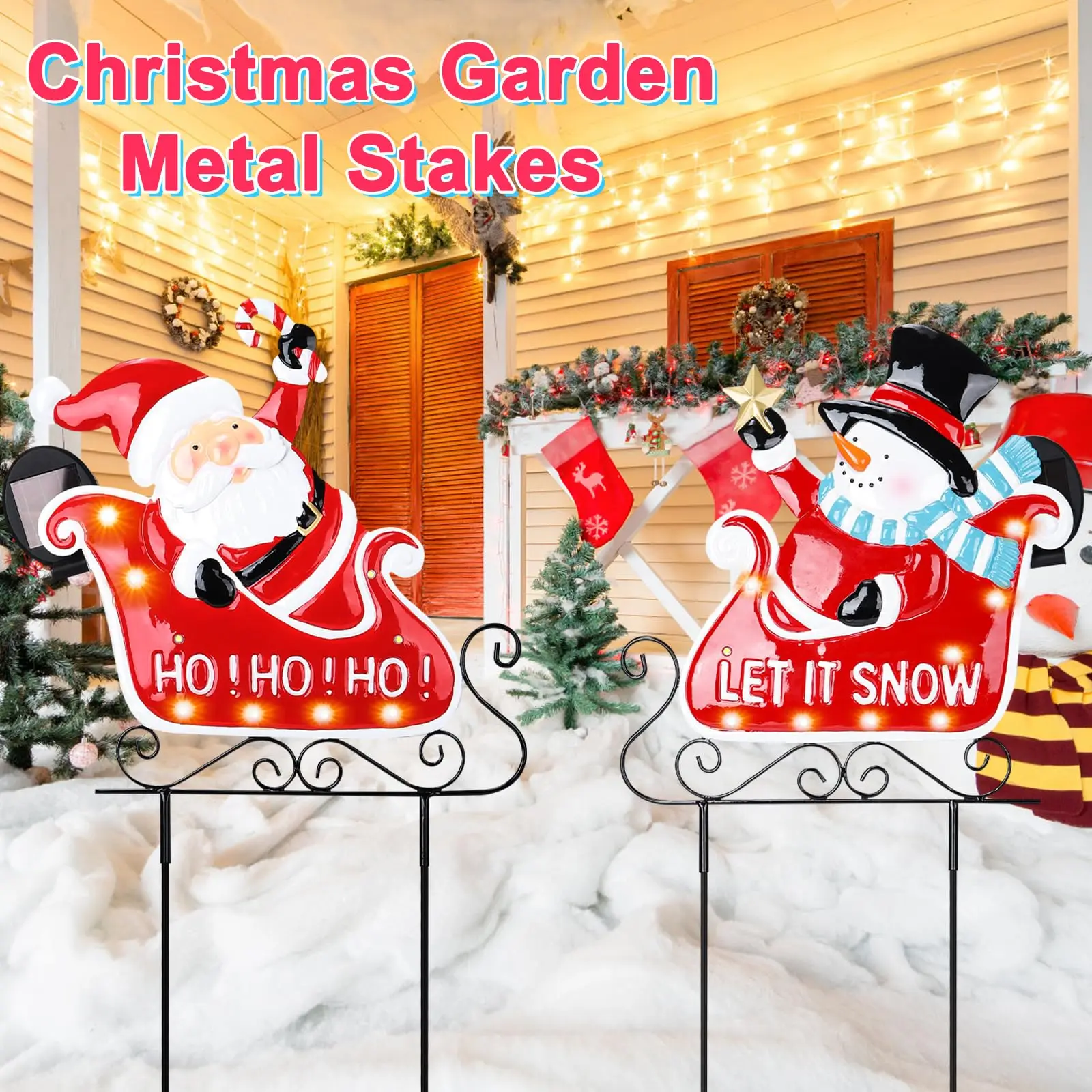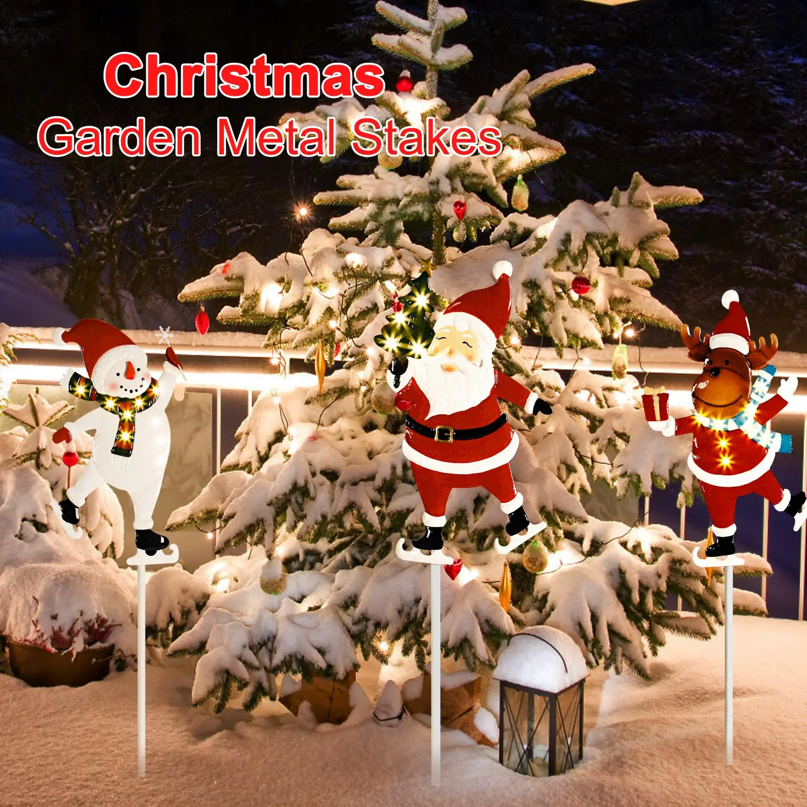 Christmas Decorations Outdoor Yard,Garden Metal Stakes with Solar LED Lights,Santa Claus,Elk,Perfect for Outdoor Lighted Holiday