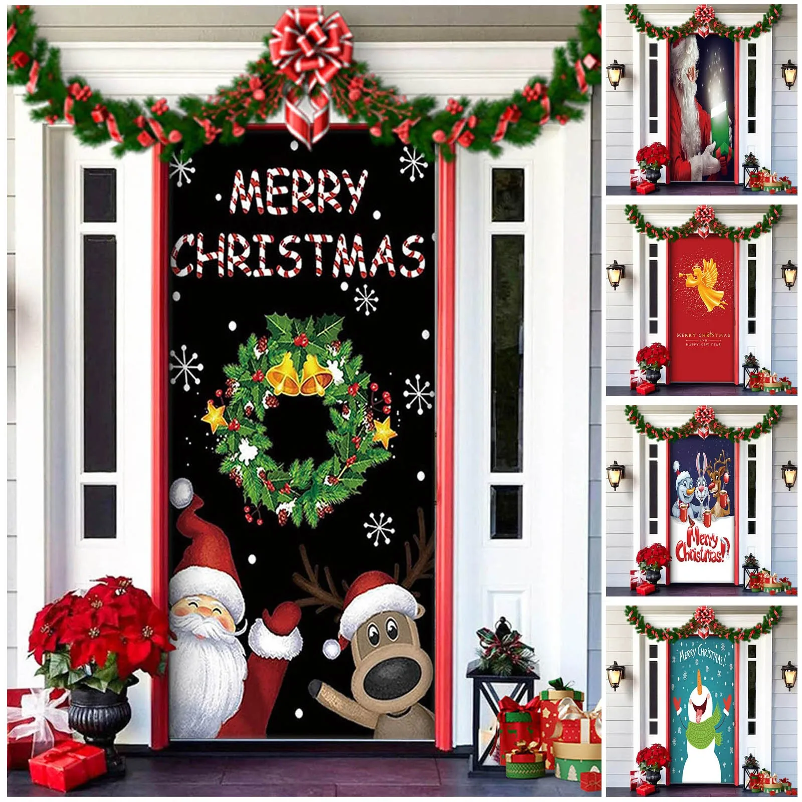 Christmas Door Decoration Door Cover Hanging Cloth Holiday Party Layout Scene Background Cloth Window Hanging Ornaments